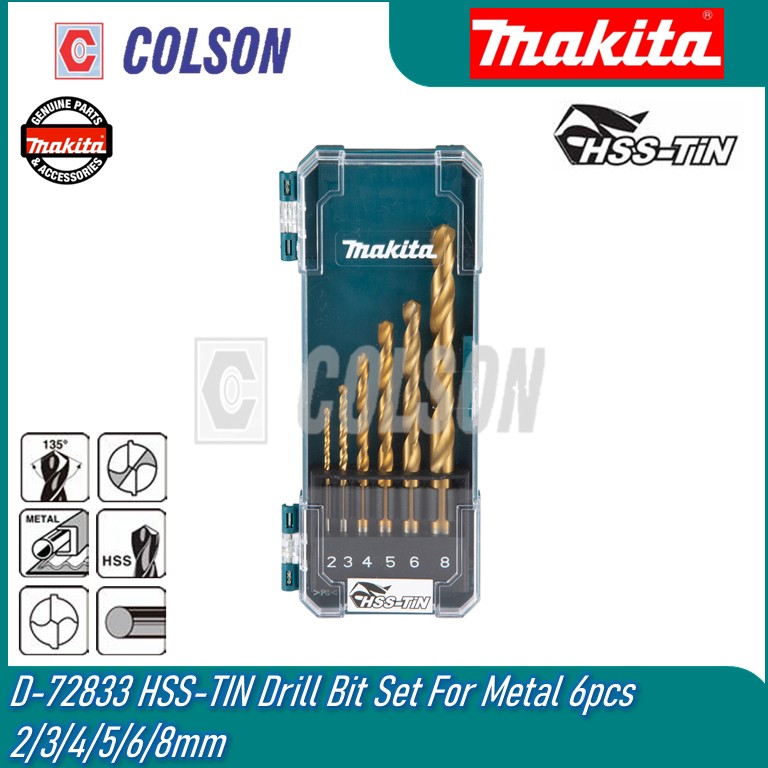 MAKITA D-72833 HSS-TIN Drill Bit Set For Metal 6pcs