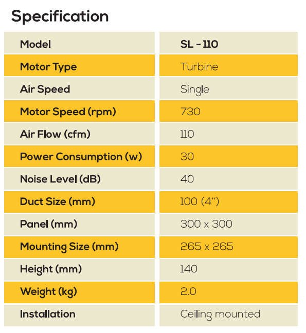 AireGard SL-110 Low Profile Series Celing space 5.5″ (140 mm) Ventilator Fan