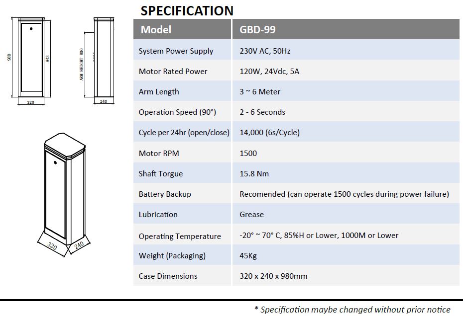 SECURA BRUSHLESS DC BARRIER GATE (GBD-99)