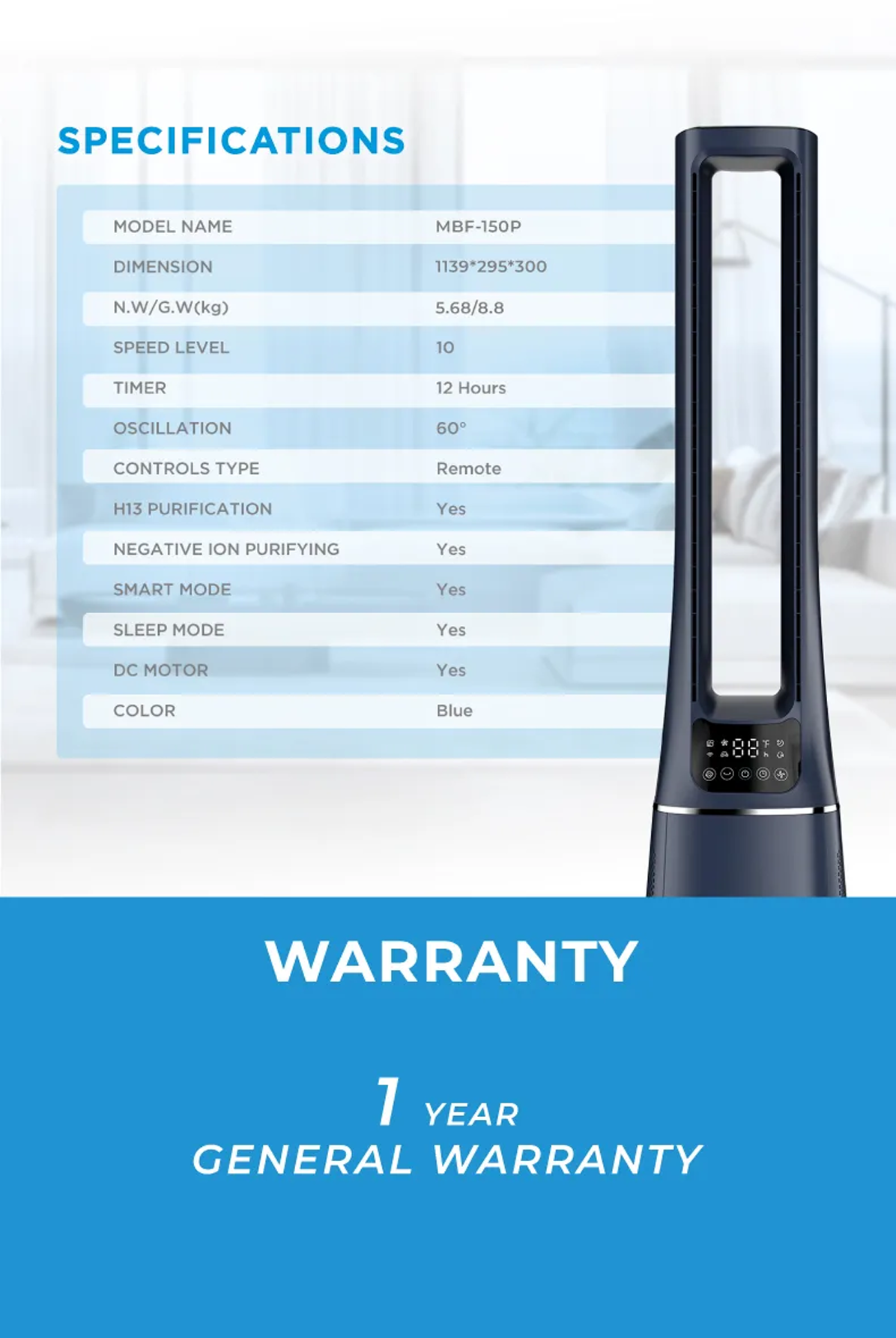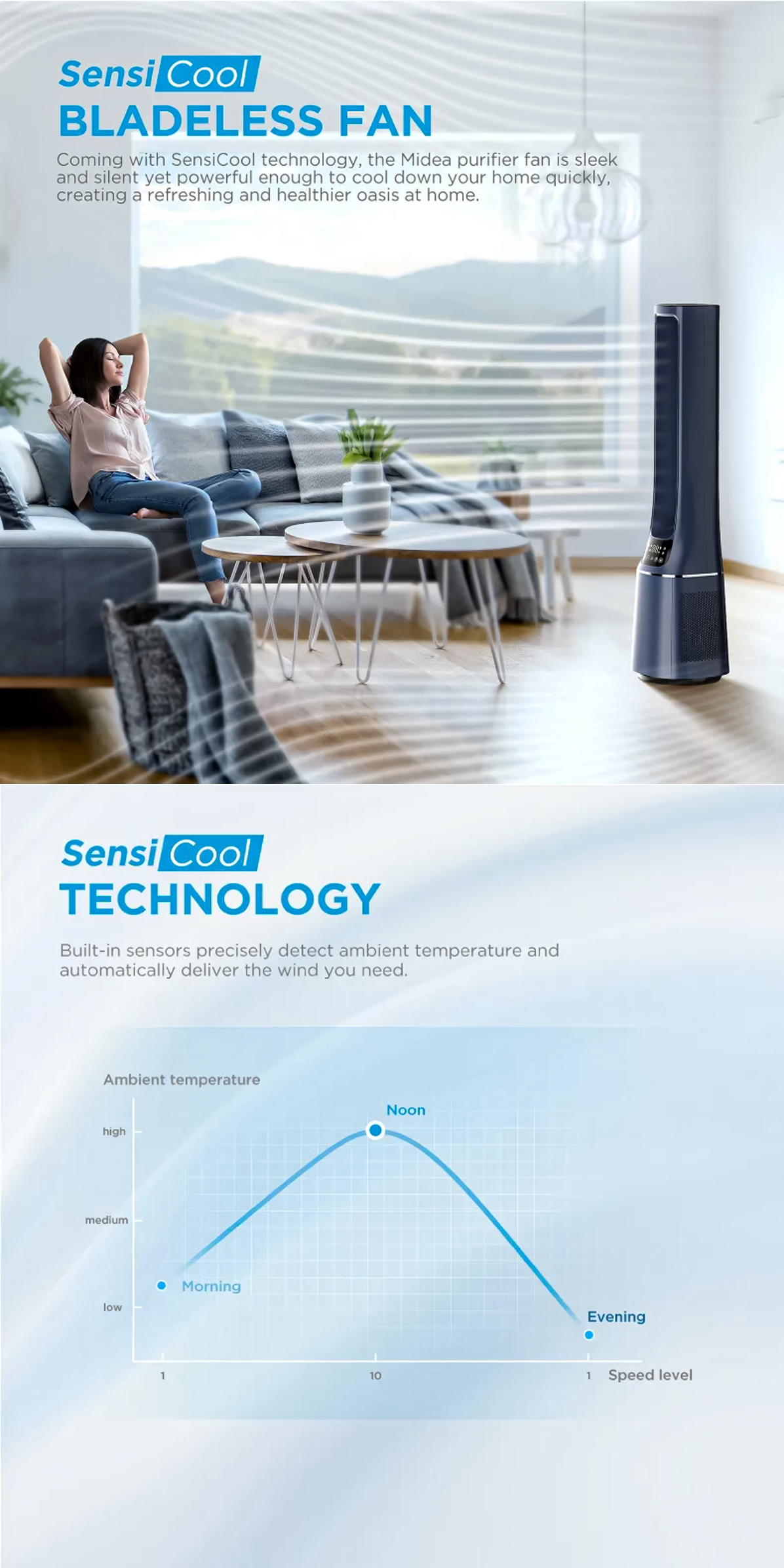 MIDEA Bladeless Fan / Air Purifier With SensiCool Technology (Air Volume 20 m/min) - MBF-150P