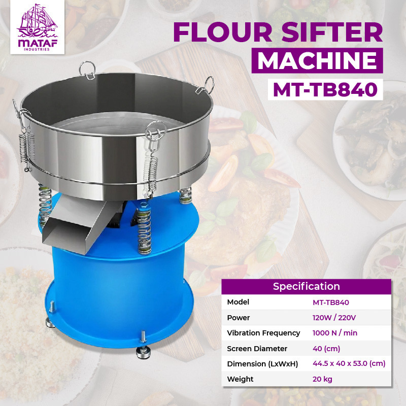 Compact and efficient flour sifter designed for consistent sieving and refined flour output. Powered by a 120W motor with a 220V supply, it operates at 1000 N/min vibration frequency to ensure smooth and accurate flour separation. With a 400mm screen diameter, this lightweight 20kg unit is ideal for bakeries, restaurants, and food production lines.