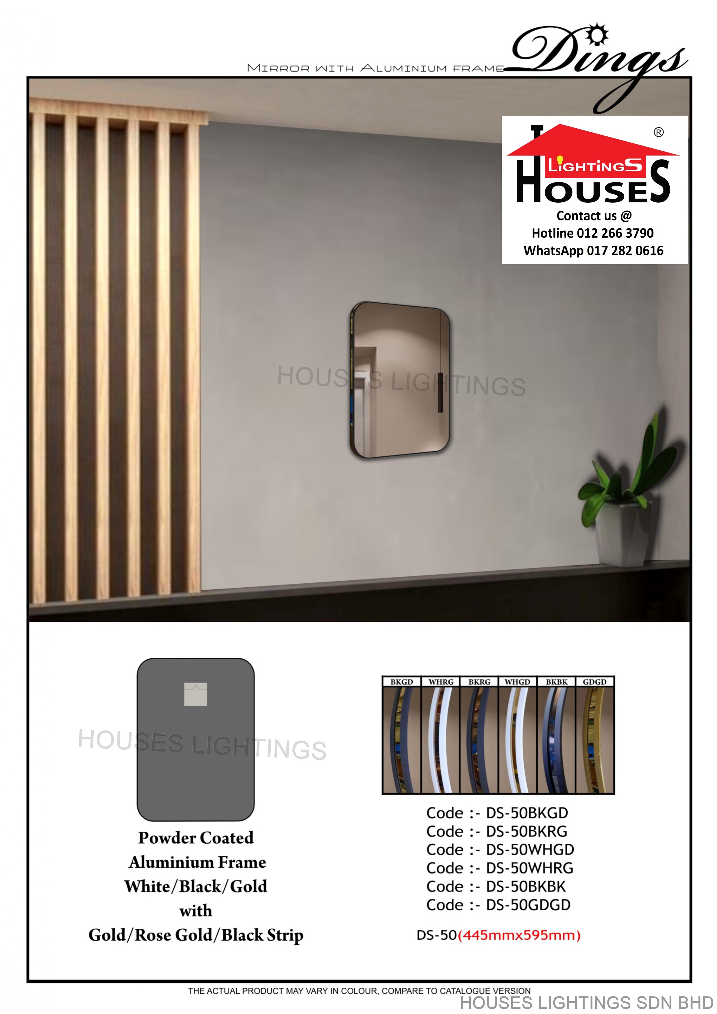 DINGS DS-50 BK+GD | DS-50 BK+RG | DS-50 WH+GD | DS-50 WH+RG | DS-50 BK+BK | DS-50 GD+GD - 445MM x 595MM MIRROR