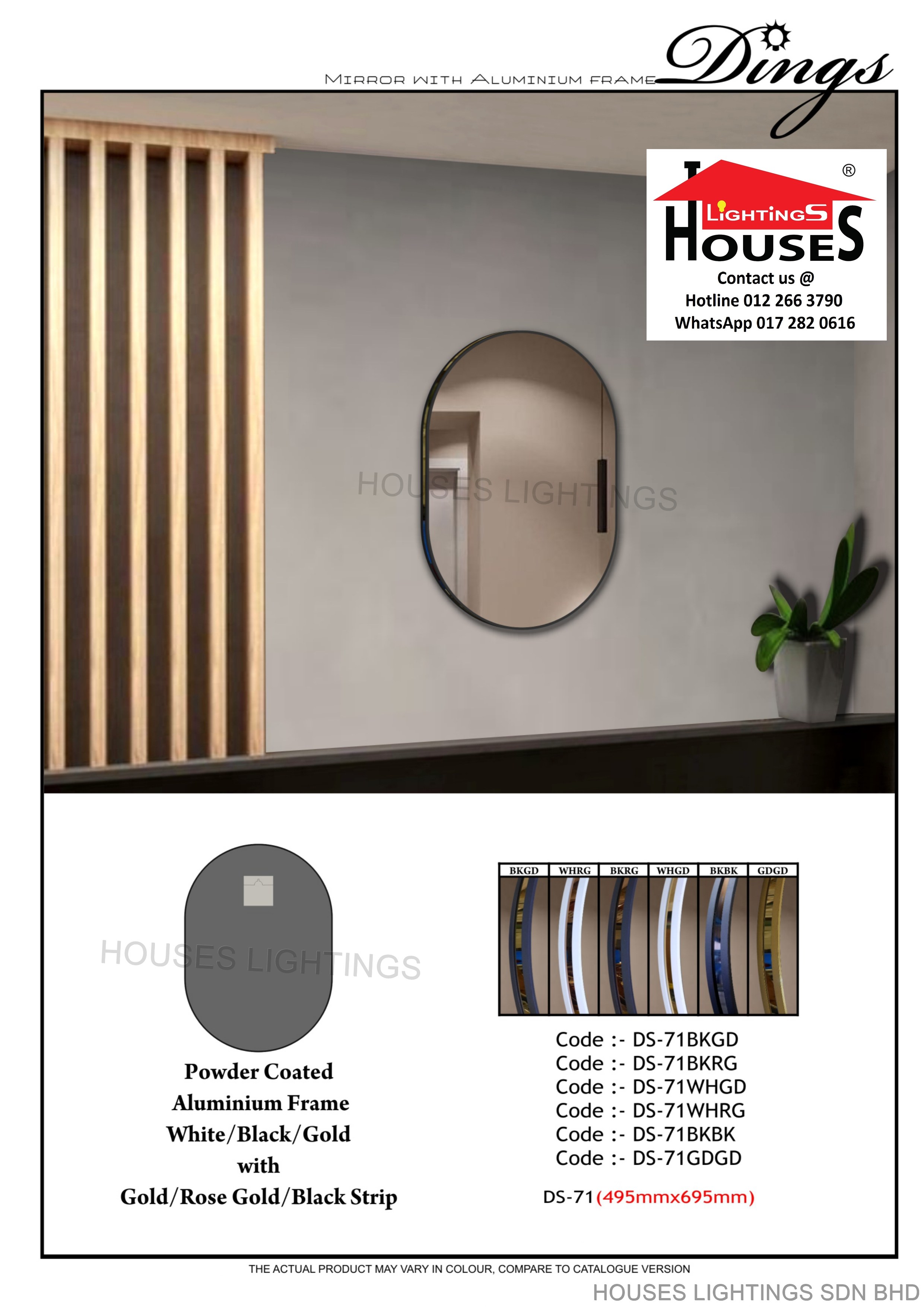 DINGS DS-71 BK+GD | DS-71 BK+RG | DS-71 WH+GD | DS-71 WH+RG | DS-71 BK+BK | DS-71 GD+GD - 495MM x 695MM MIRROR