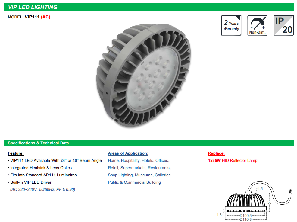 Model: VIP111 (AC) Non-Dimmable LED Highbay
