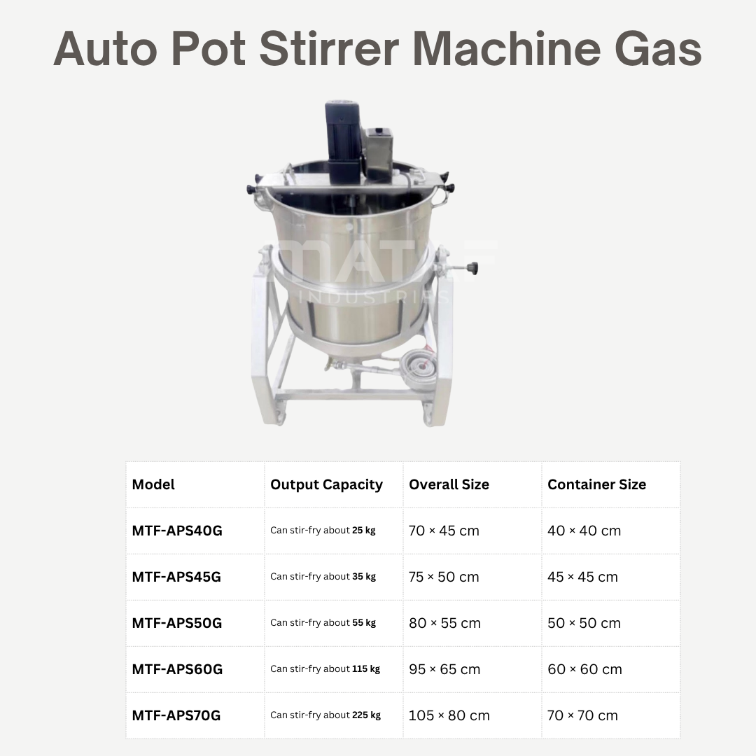 MTF-APS40G | Can stir-fry about 25 kg | 70 × 45 cm | 40 × 40 cm | RM3,500 |