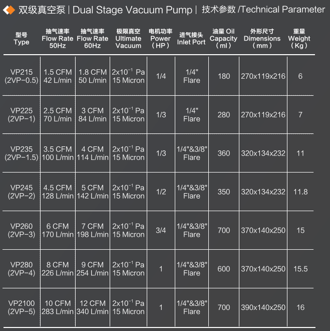 CHINA COOLINK 4.5 CFM VACUUM PUMP 2 STAGE / DUAL STAGE VP 245 (50Hz)