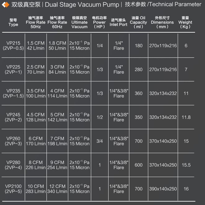 CHINA COOLINK 6 CFM VACUUM PUMP 2 STAGE / DUAL STAGE VP 260 (50Hz)