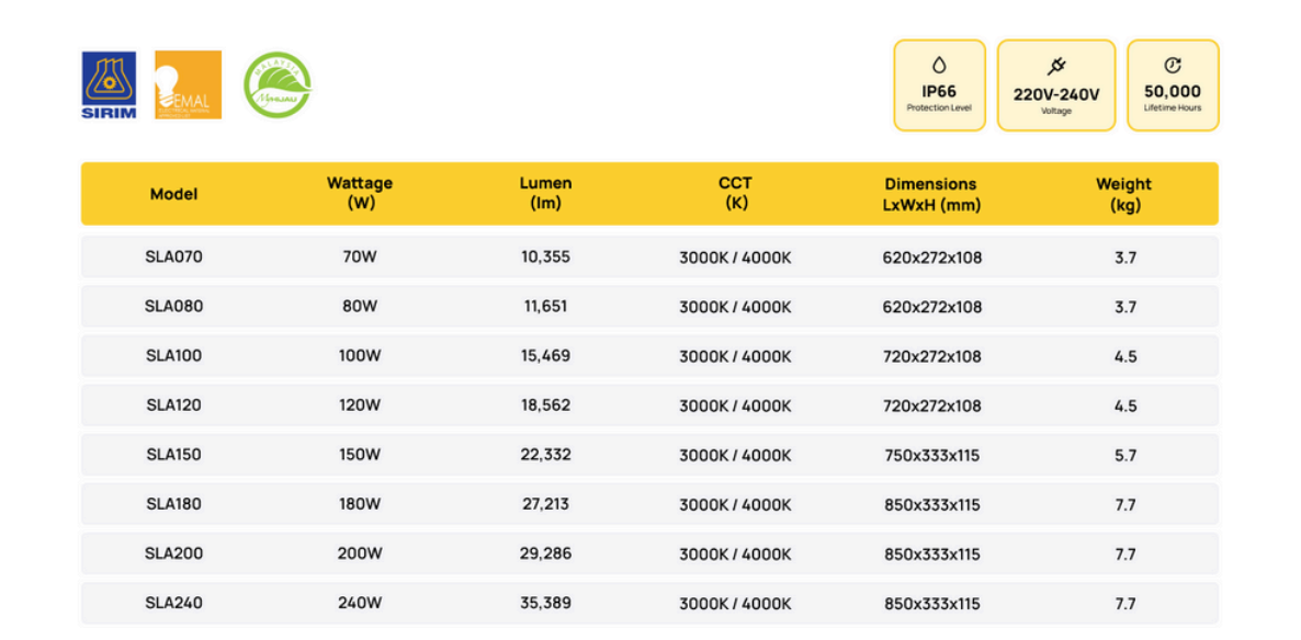 JLUX SLA LED STREETLIGHT JKR EMAL SPEC SERIES 240V 50,000HRS IP66 [70W/80W/100W/120W/150W/180W/200W/240W] [10355LM/11651LM/15469LM/18562LM/22332LM/27213LM/29286LM/35389LM] [3000K/4000K]