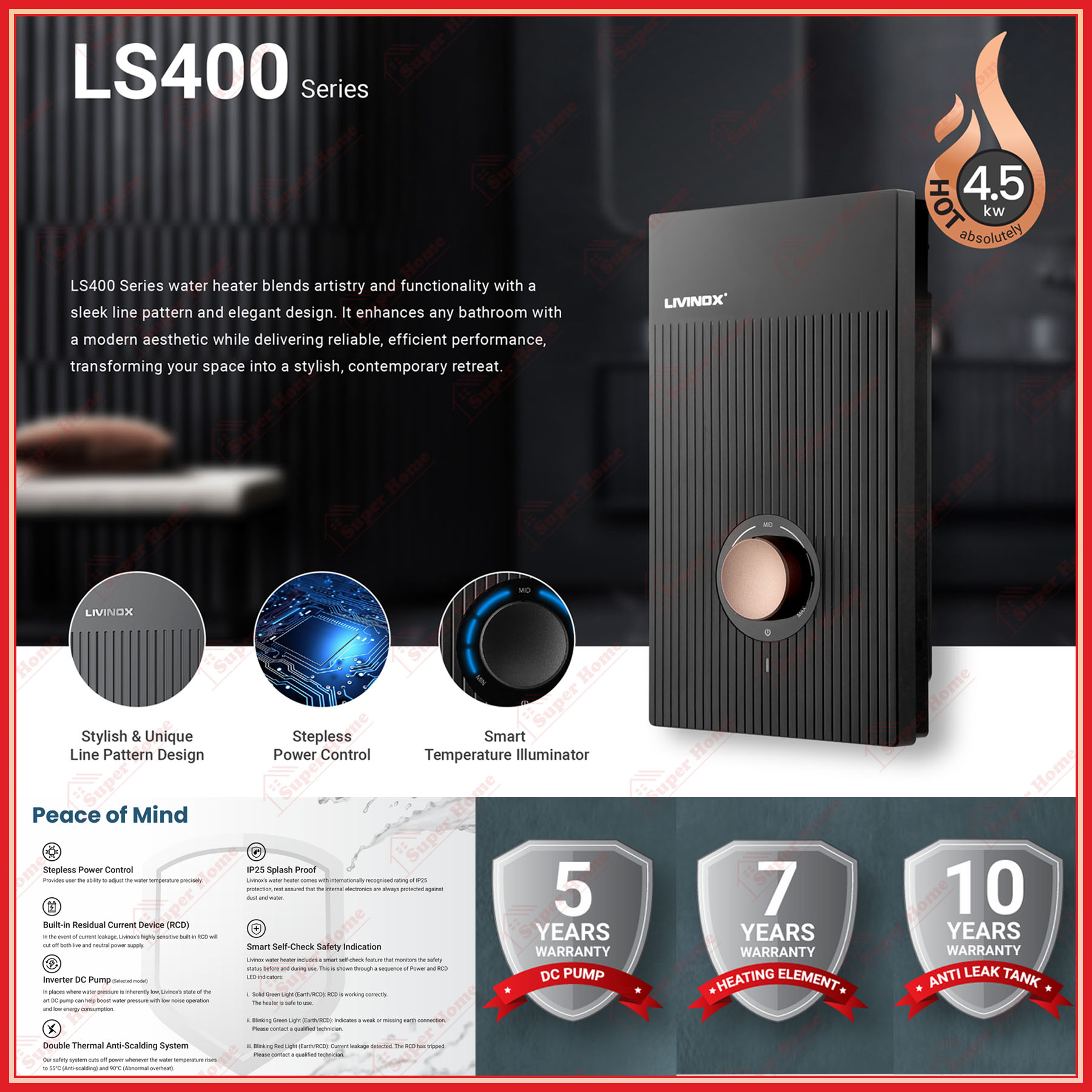 Livinox DC Pump Water Heater LWH-LS400-DC-MB DC Inverter Silent Pump Instant Water Heater Matt Black