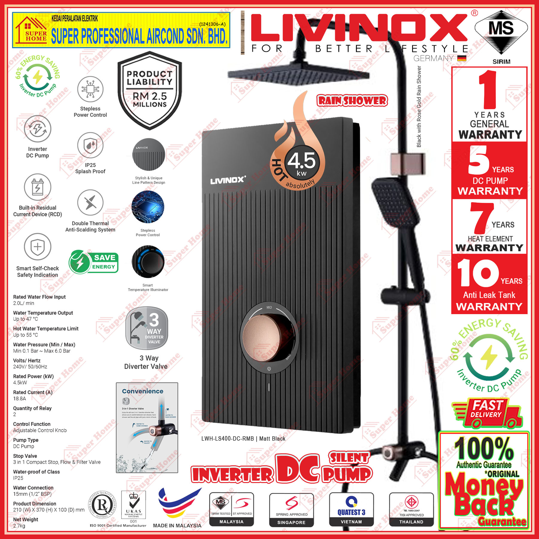 Livinox Water Heater LWH-LS400-DC-RMB DC Inverter Silent Pump Instant Water Heater with Rain Shower Matt Black
