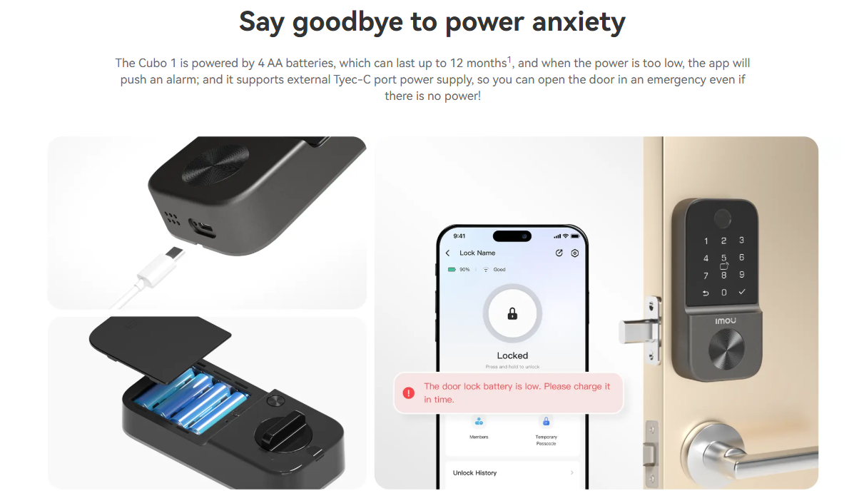Color:Metal Gray Panel Material: Aluminum Alloy Emergency Charging: Type-C Battery Life: Approximately 12 months (with 10 uses per day) Power Source: 4 * AA Working Environment: -30°C~+55°C(Outdoor Unit), 0°C~+55°C(Indoor Unit), Less Than 95%RH Protection Level: IP54 (Outdoor Unit), IP52 (Indoor Unit)