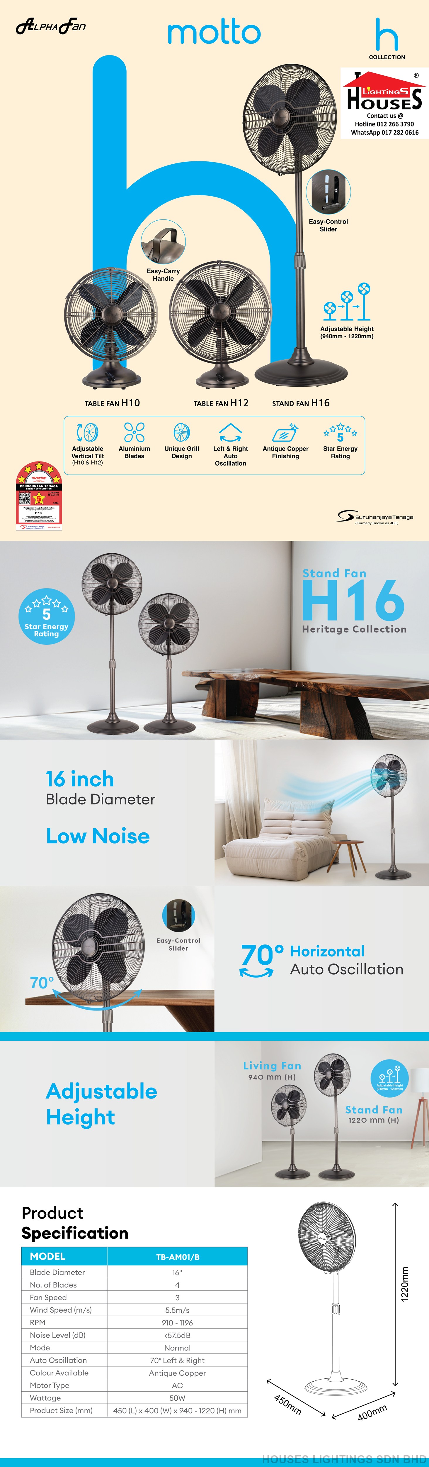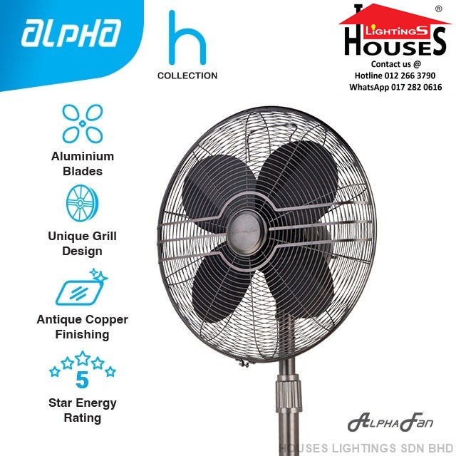 ALPHA Motto - SF H16 Motor Stand Fan 16 Inch with 4 Blades (3 Speed Remote) - Antique Copper