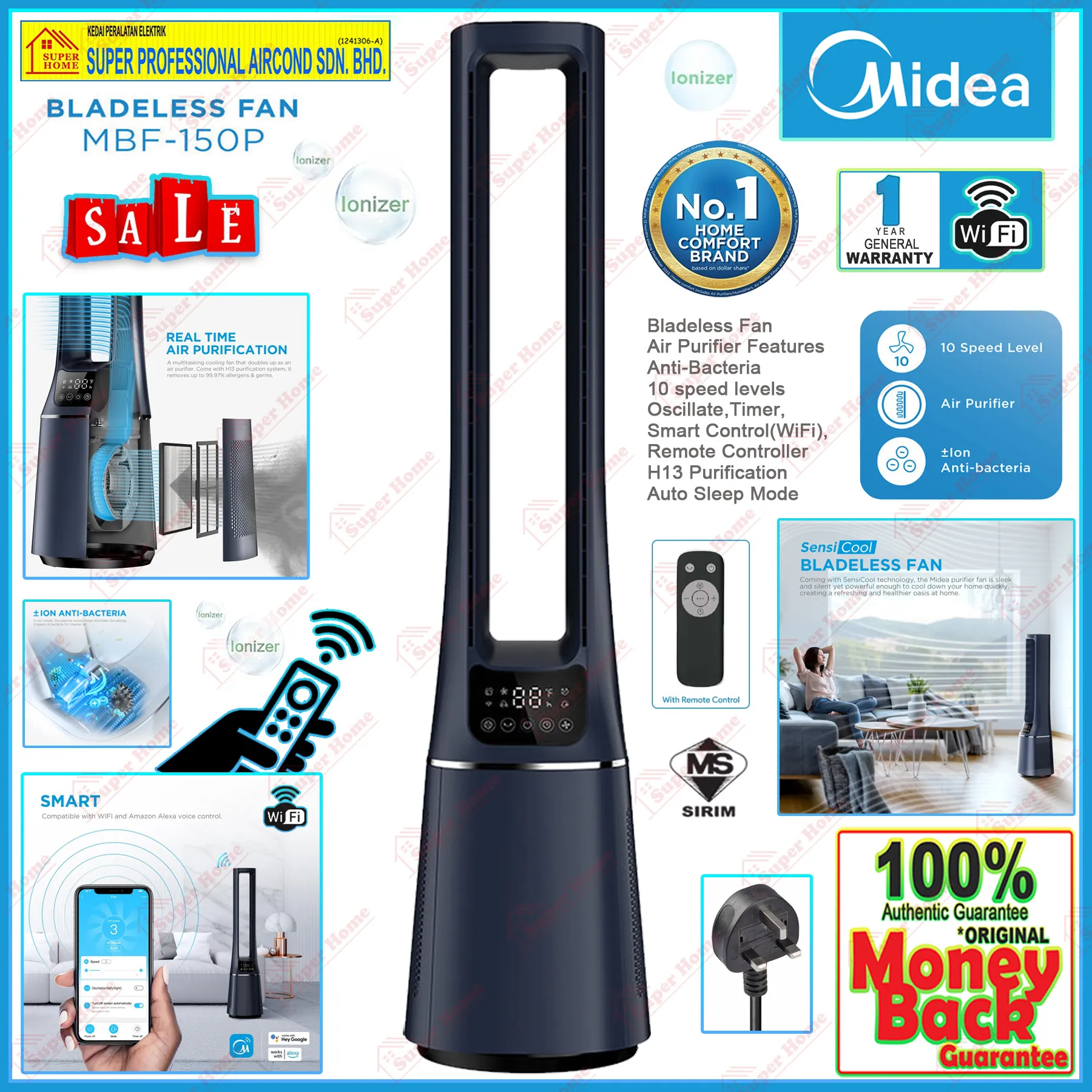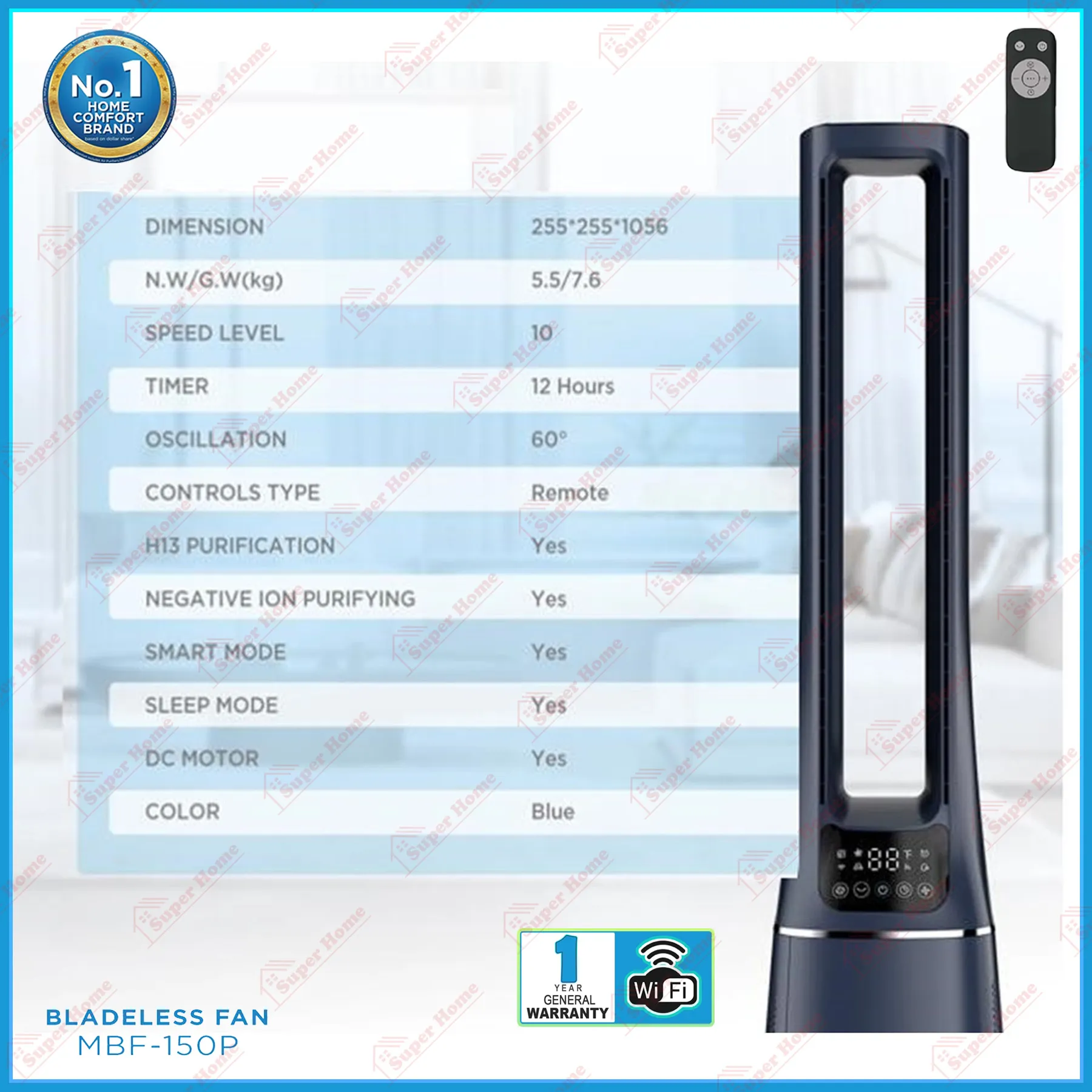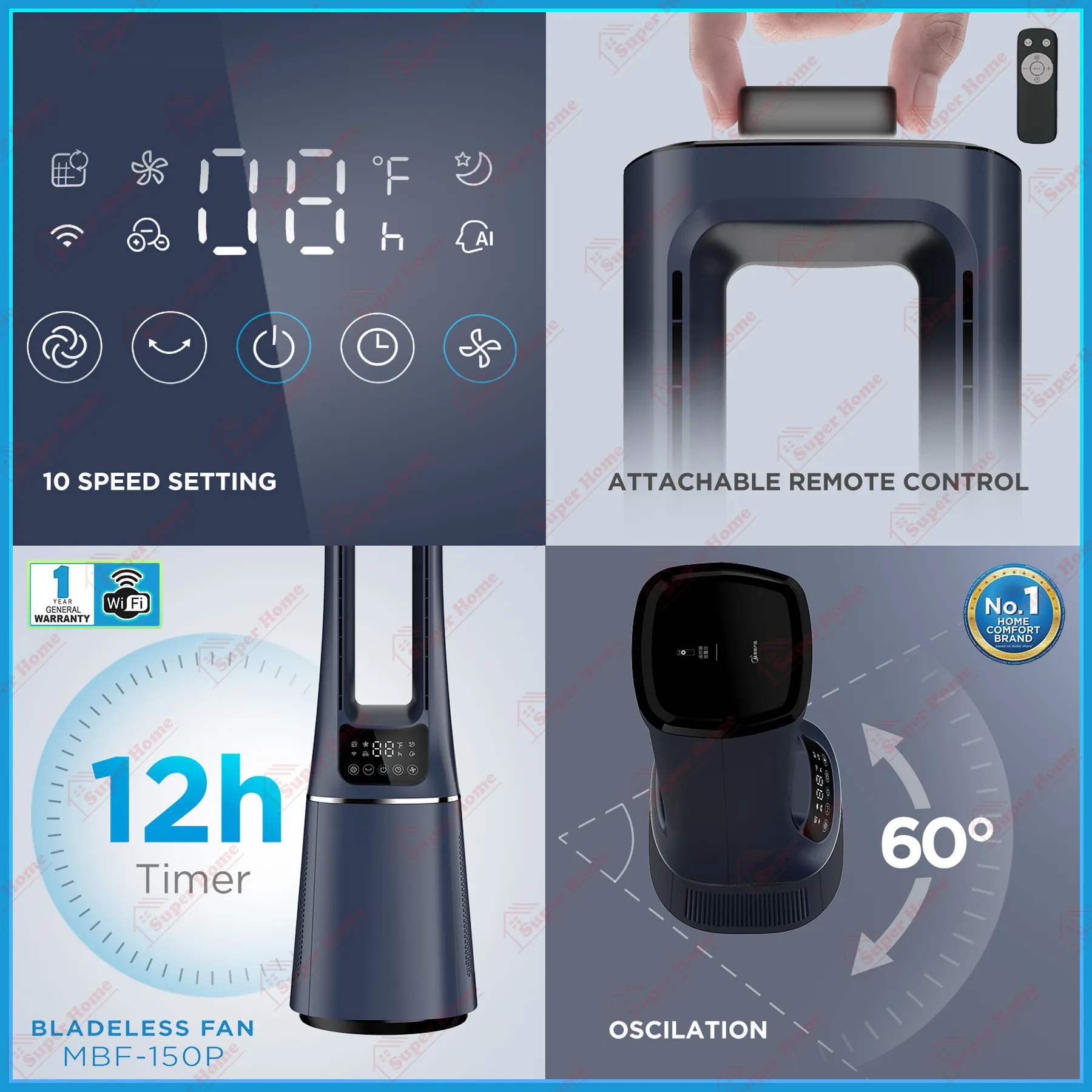 Midea Bladeless Fan MBF-150P (Blue) / Air Purifier With SensiCool Technology (Air Volume 20 m/min) / Tower Fan