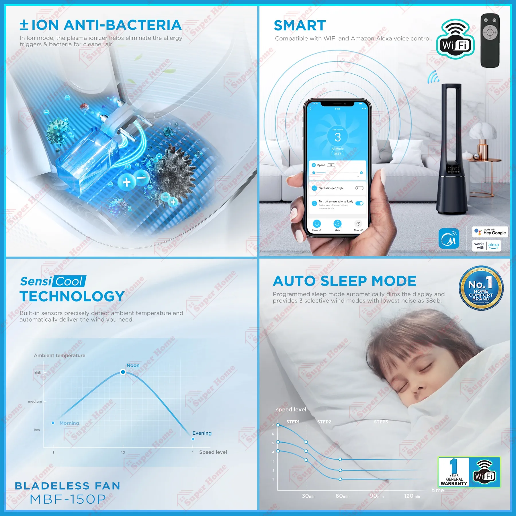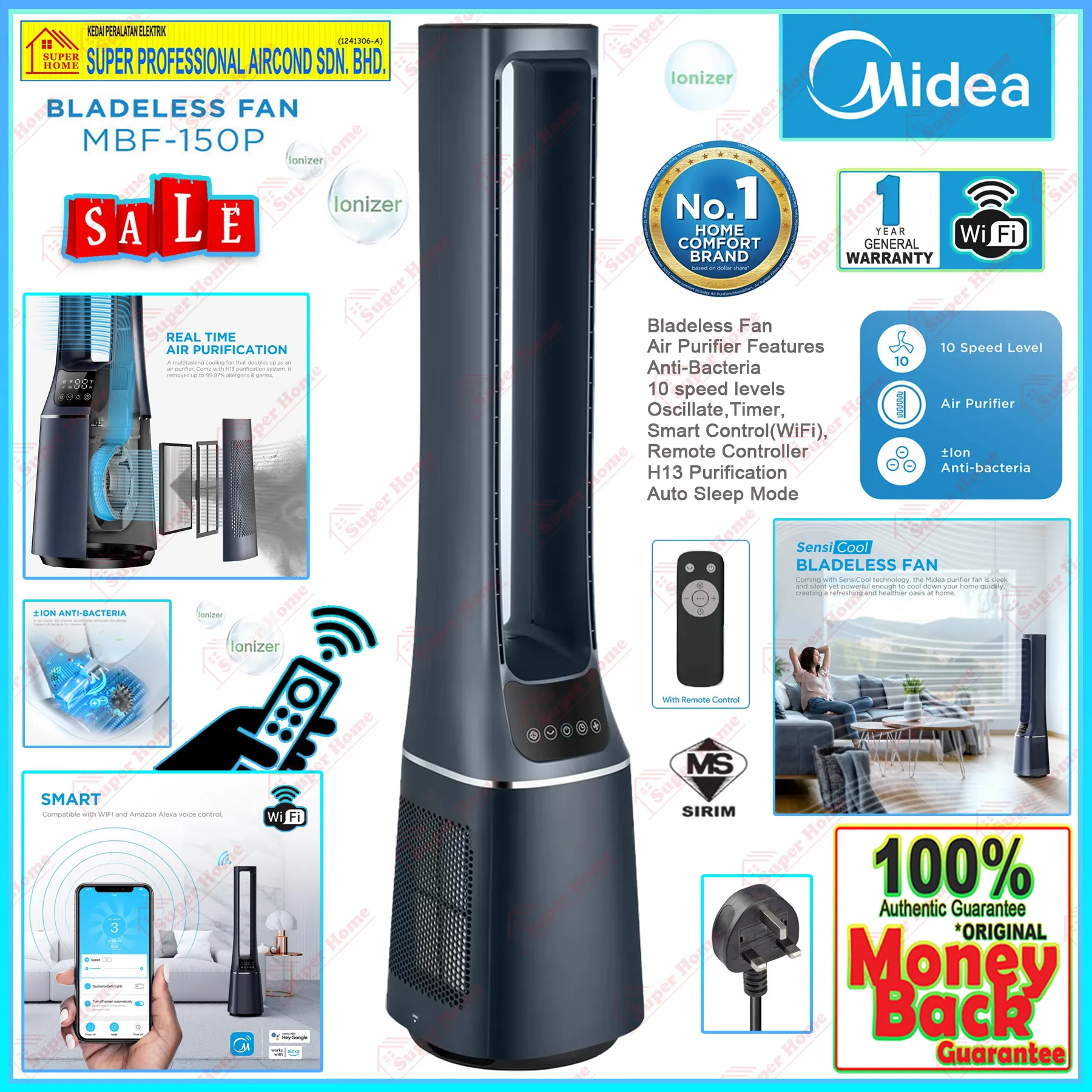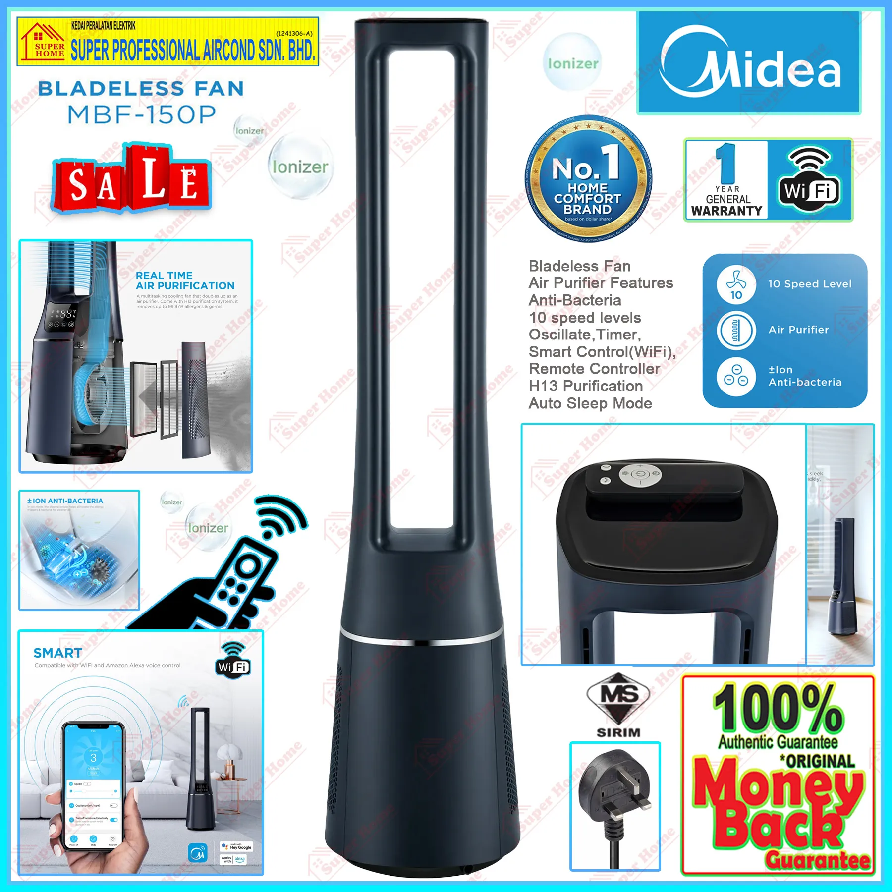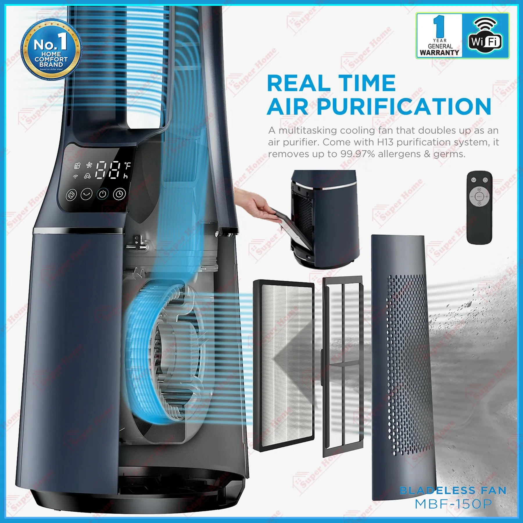 Midea Bladeless Fan MBF-150P (Blue) / Air Purifier With SensiCool Technology (Air Volume 20 m/min) / Tower Fan