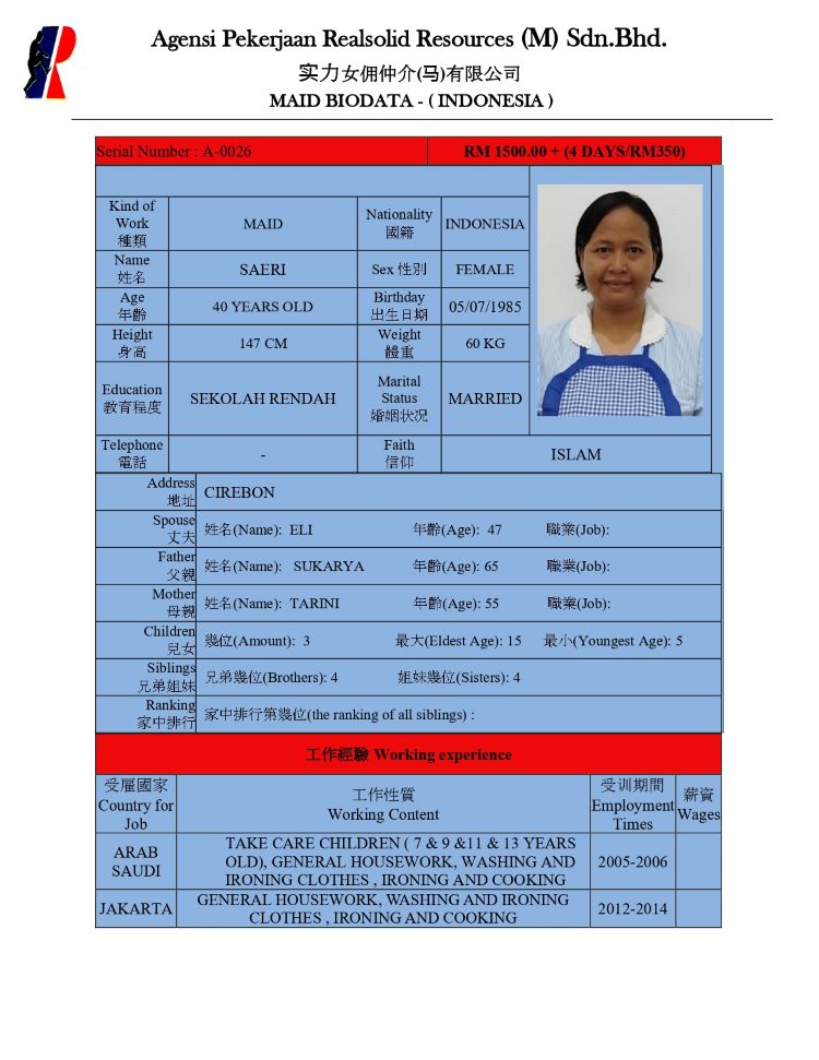 Maid Agency Malaysia, Masai, Johor Bahru (JB) - Agensi Pekerjaan Realsolid Resources (M) Sdn Bhd
