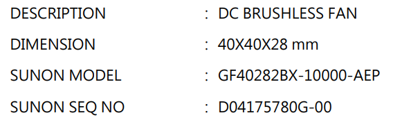 SUNON GF40282BX-10000-AEP 40x40x28 MM (IP68 / GR487) DC BRUSHLESS FAN