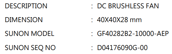 SUNON GF40282B2-10000-AEP 40x40x28 MM (IP68 / GR487) DC BRUSHLESS FAN