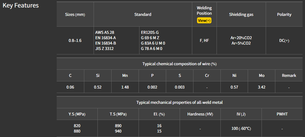 - AWS: A5.28 : ER120S-G