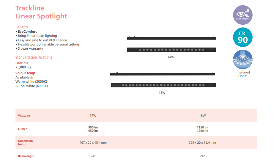 Experience precision lighting performance with the (NEW) PHILIPS LED SLIM TRACKLINE LINEAR SPOTLIGHT CRI90 25,000HRS [14W/18W] [950LM/1200LM] [3000K/4000K], a new generation of high-efficiency LED track lights designed to enhance modern commercial and residential spaces.