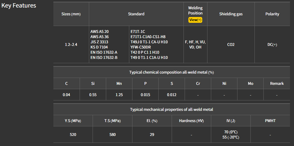 - EN: ISO 17632-A : T42 0 P C1 1 H10