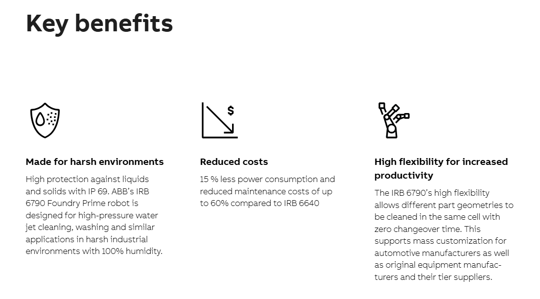 ABB developed its third-generation Foundry Prime robot aimed at increasing reliability and system uptime, while reducing maintenance costs. The robot is available in two variants – one with a 205 kg payload with 2.80 m reach, and one with a 235 kg payload and 2.65 m reach.