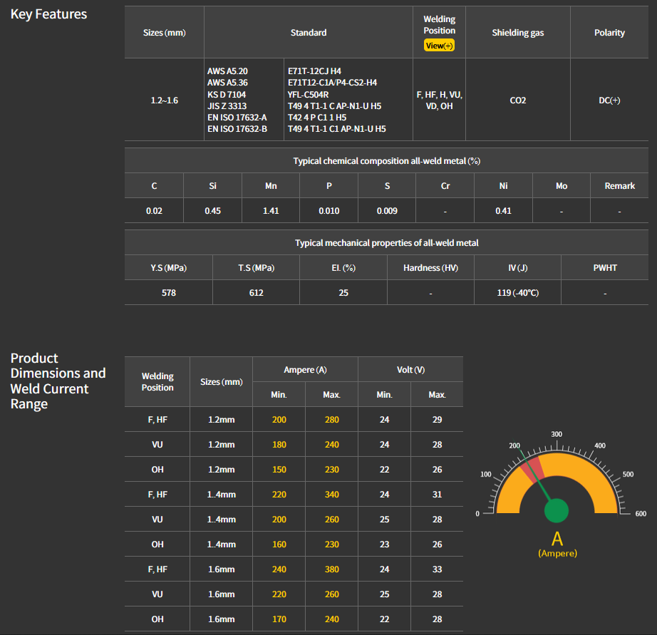 For 490MPa low temperature steel(NACE, API steel),Good impact toughness both AS-weld and PWHT conditions