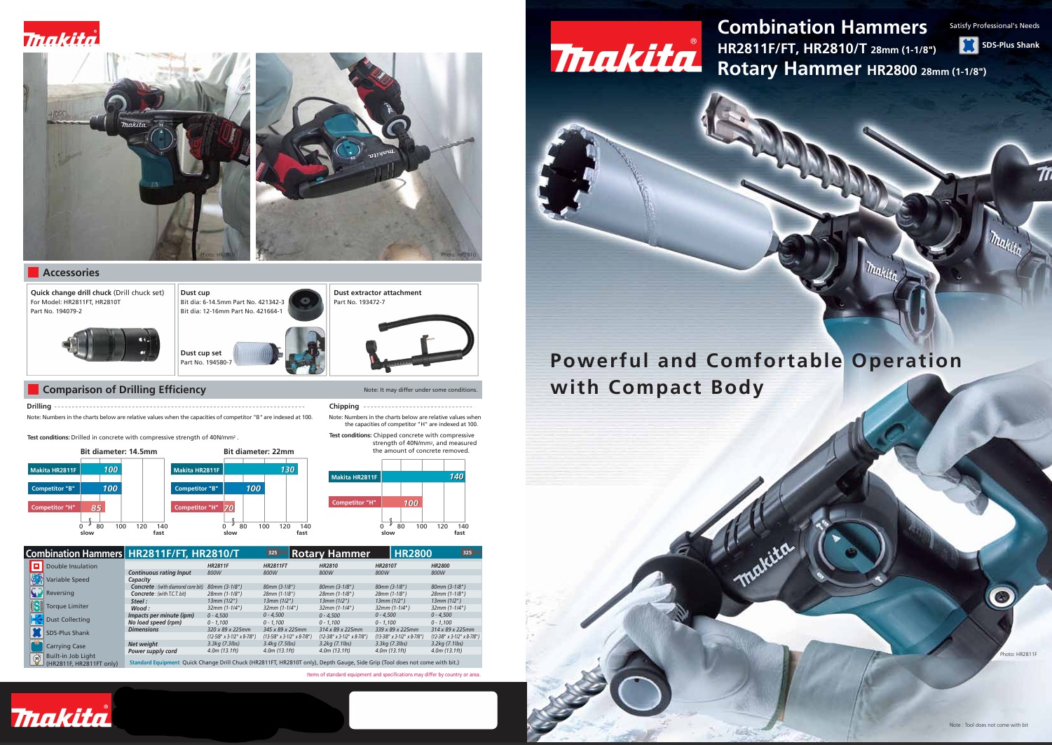 Capacity Concrete (with TCT Bit): 28 mm (1-1/8")