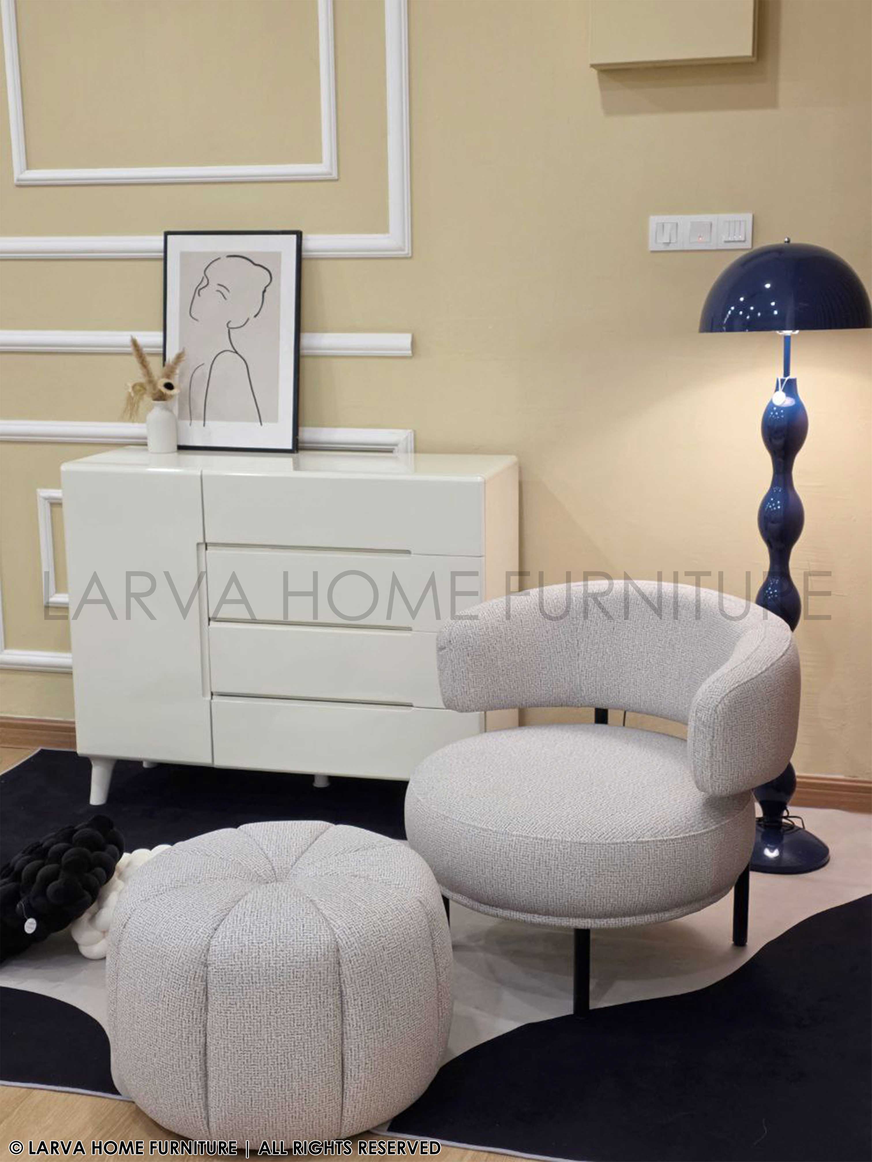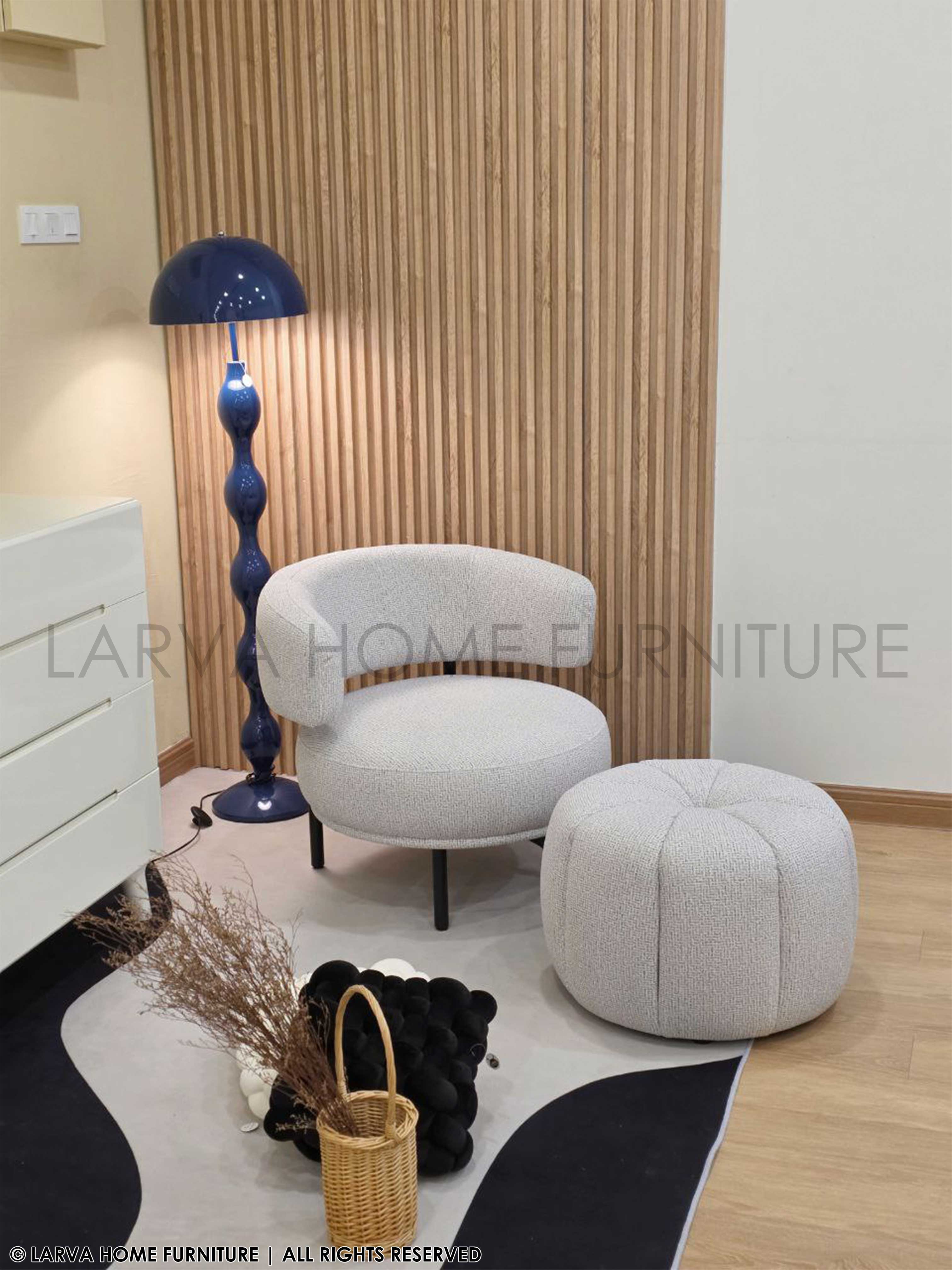 A modern pairing that’s as functional as it is beautiful. The Svetu Relax Chair with matching stool creates the perfect cozy spot for reading, lounging, or quiet reflection. Soft contours and textured fabric offer a luxurious touch, while the stool adds versatility and comfort. A duo made for restful, stylish living.