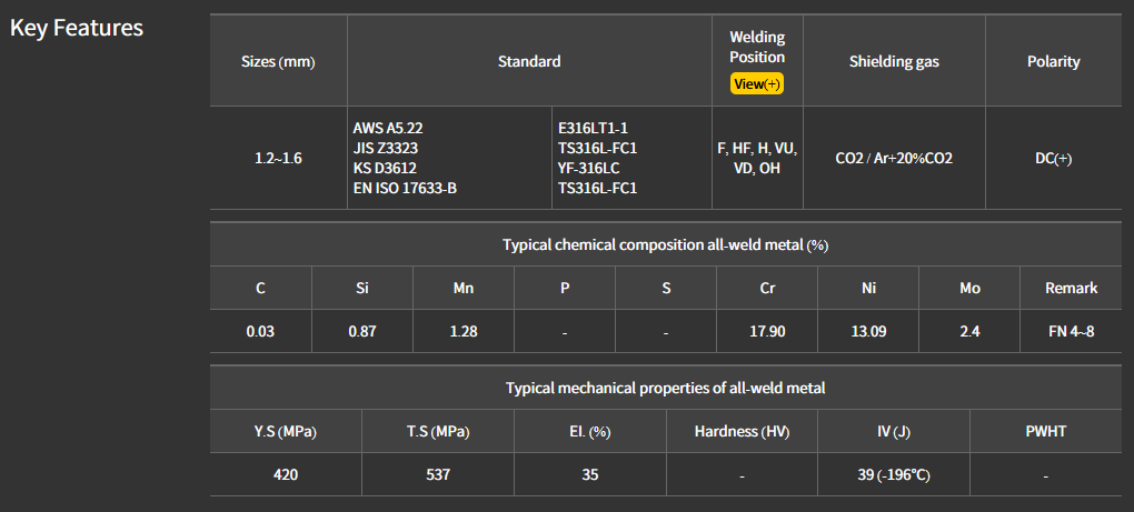 - AWS: A5.22 : E316LT1-1