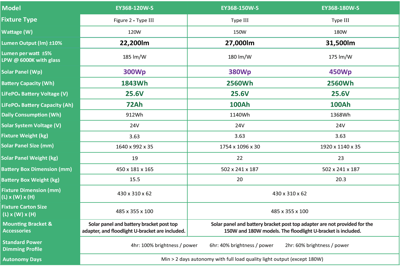 Wattage Range: 30W, 60W, 80W, 120W, 150W, 180W