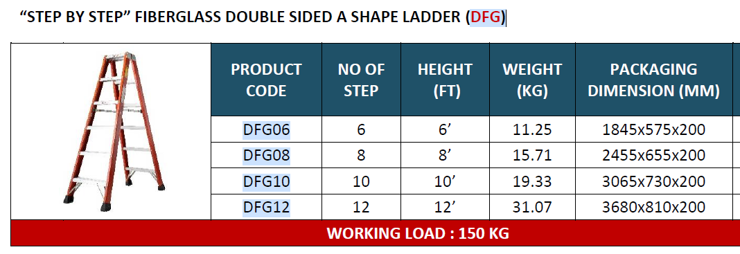 “STEP BY STEP” FIBERGLASS DOUBLE SIDED A SHAPE LADDER (DFG)
