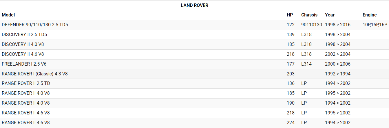 Technical features Panel Outside Width/Base Inner Diameter (mm) : 205 Outside Length/Base Outside Diameter (mm) : 242 OEM CROSS REFERENCE : LAND ROVER ESR4238 LAND ROVER LR027408