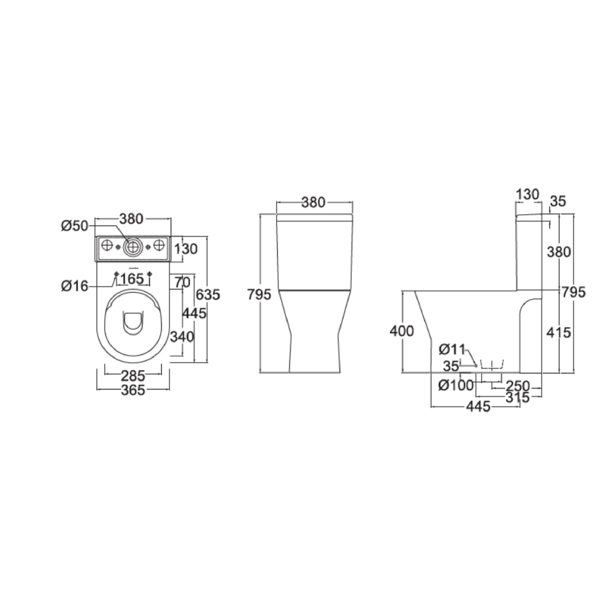 Dimensions: L635 x W380 x H795mm