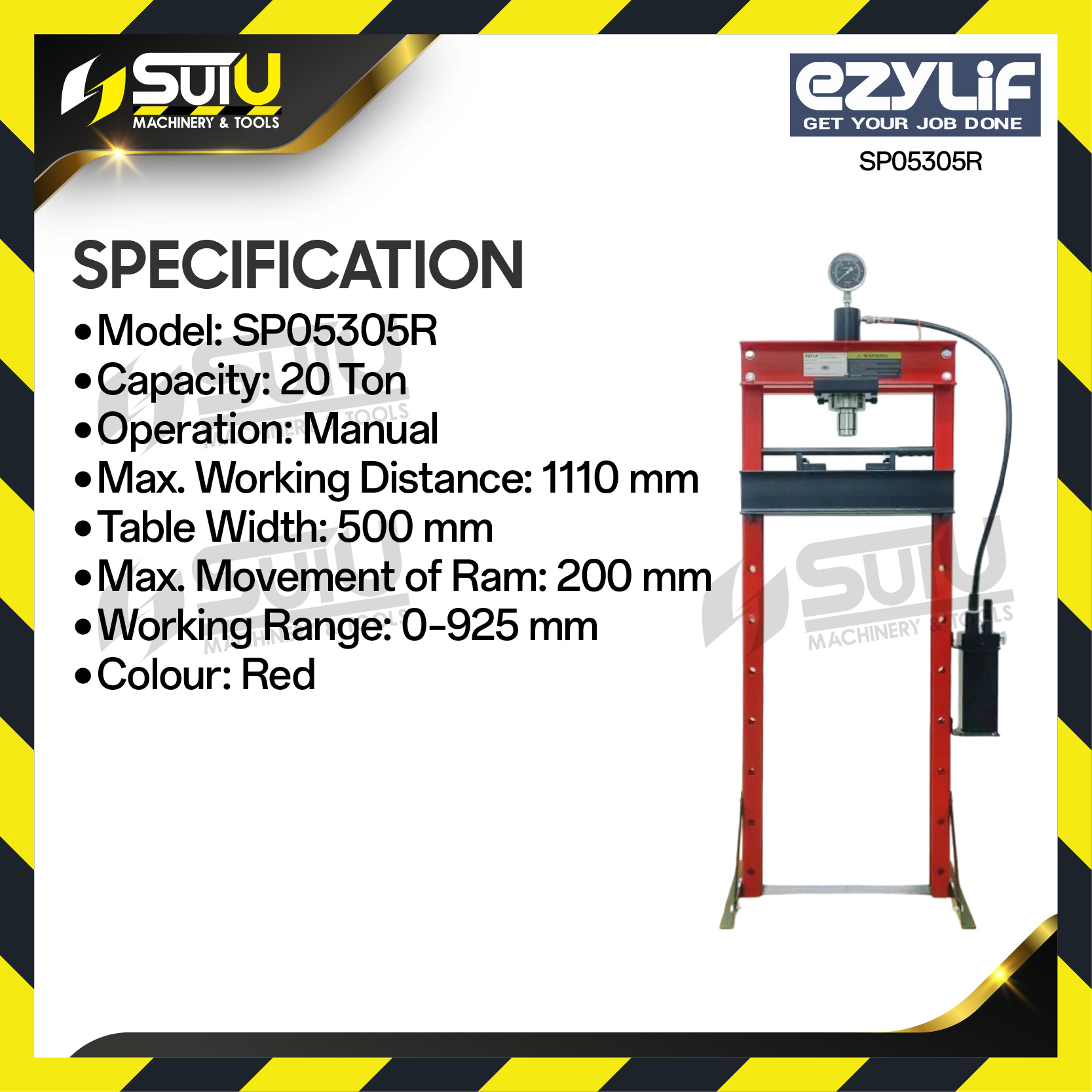 EZYLIF SP05305R 20TON Hydraulic Shop Press /w Pressure Gauge (Double Pump)