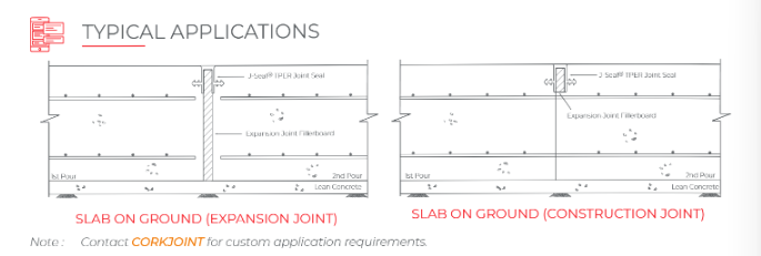 CORKJOINT® J-Seal® TPER Joint Seal, made from Thermoplastic Elastomeric Rubber, is a pre-formed joint seal for use in expansion and construction joints in concrete to prevent the egress of water through the joint, and to seal against the infiltration of debris and foreign matter from entering the joint. is a pre-formed joint seal for use in expansion and construction joints in concrete to prevent the egress of water through the joint, and to seal against the infiltration of debris and foreign matter from entering the joint.