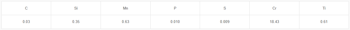 - Weld metal is ferrite structure with 18%Cr-Ti