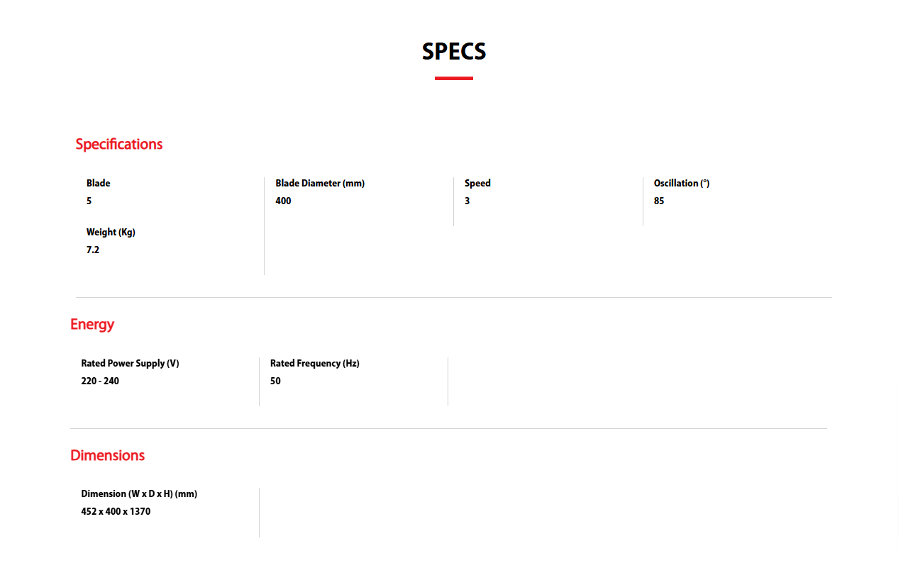 TOSHIBA 16 Inch 5 Blades Stand Fan 3 Speed With Timer F-LSA10(W)MY