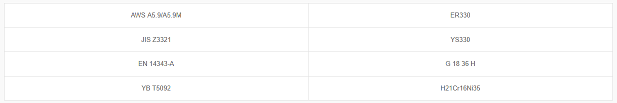 - Used to weld wrought and cast forms of stainless steels of similar chemical compositions,which offer good heat and scale resistance to 980°C