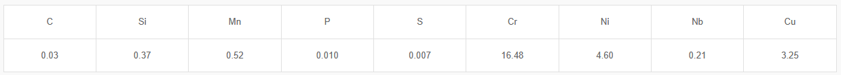 KTS-630 is a precipitation-hardening stainless steel containing 16.4% Cr, 4.7% Ni, and 3.6% Cu