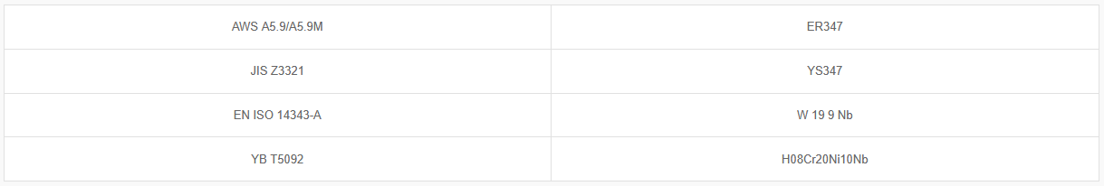 KTS-347 welding wire is an austenitic stainless steel containing 20% Cr, 10% Ni, and Nb
