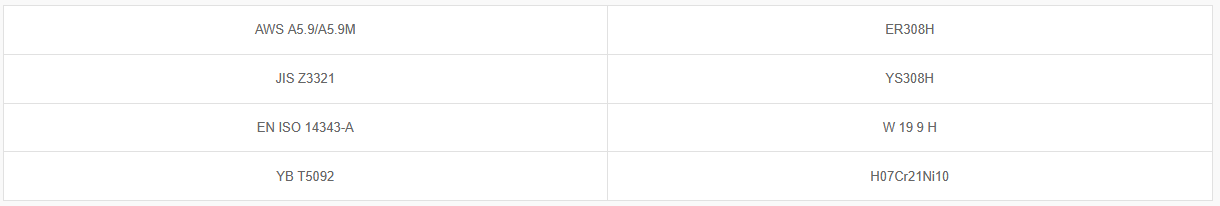 - It is suitable for welding 18% Cr-8% Ni stainless steels, such as AISI 301, 302, 304, and 308