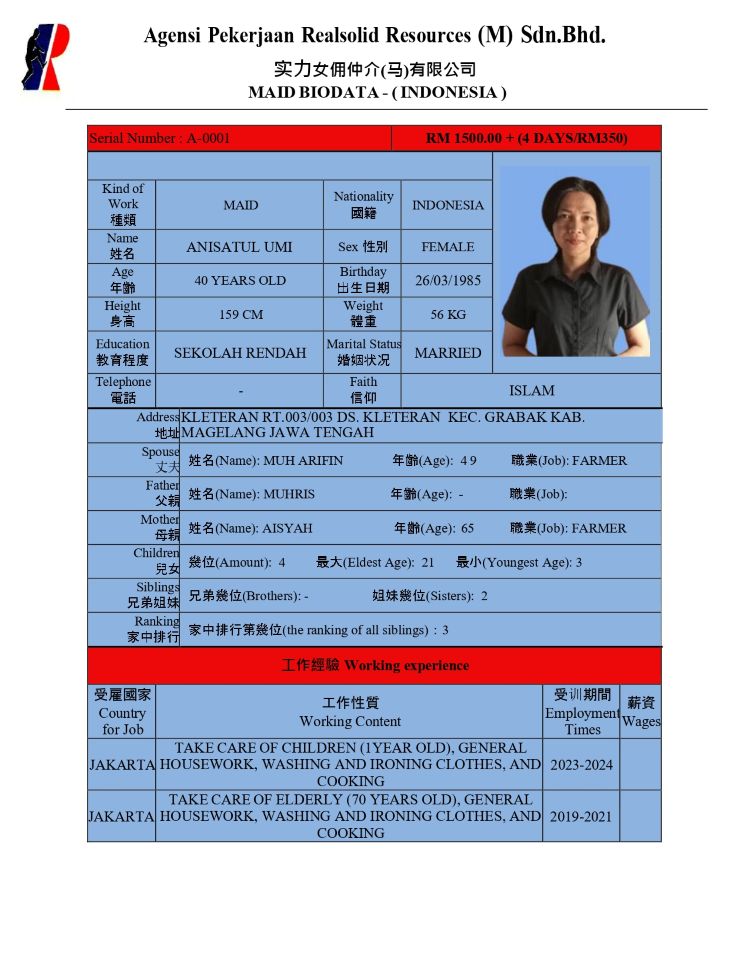 Maid Agency Malaysia, Masai, Johor Bahru (JB) - Agensi Pekerjaan Realsolid Resources (M) Sdn Bhd