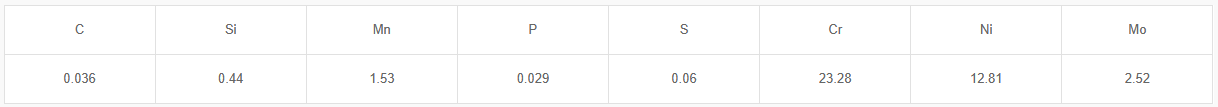 - Weld metal contains Mo and low carbon contents, which provide superior corrosion resistance.