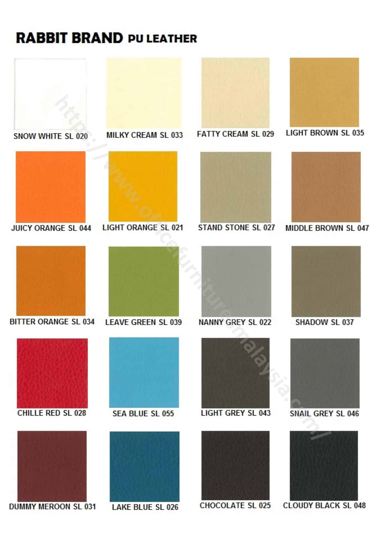 - PU Color Options: Refer To Color Chart Above