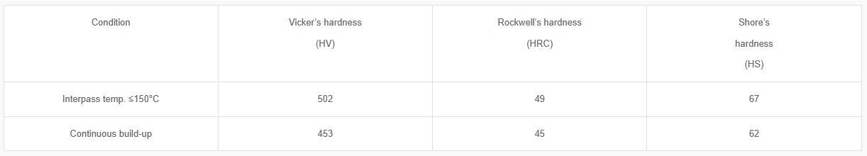 - Weld metal is martensite structure with 13%Cr and 5%Mn