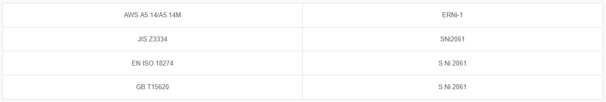 - Suitable for welding Alloy 200, Alloy 201 and nickel-plated steel sheet