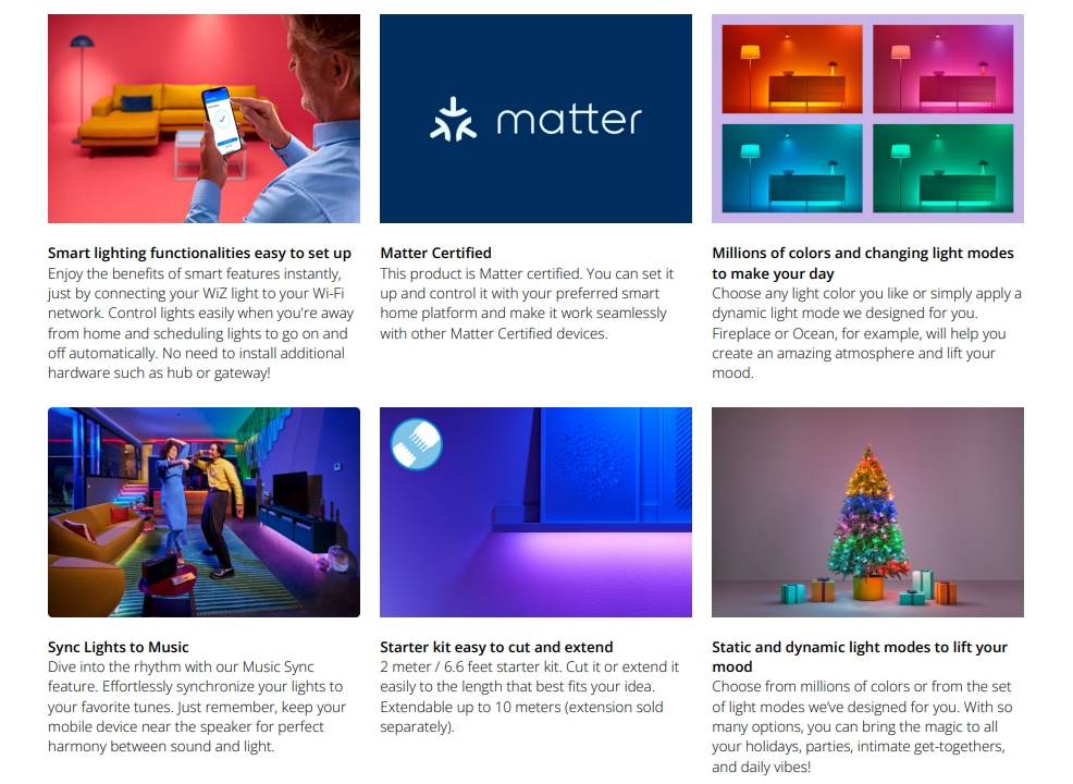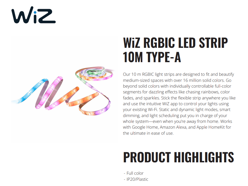 Ideal for shoppers searching for smart LED striplights, RGBIC WiZ strips, smart ambient lighting, or 10 meter LED strips.