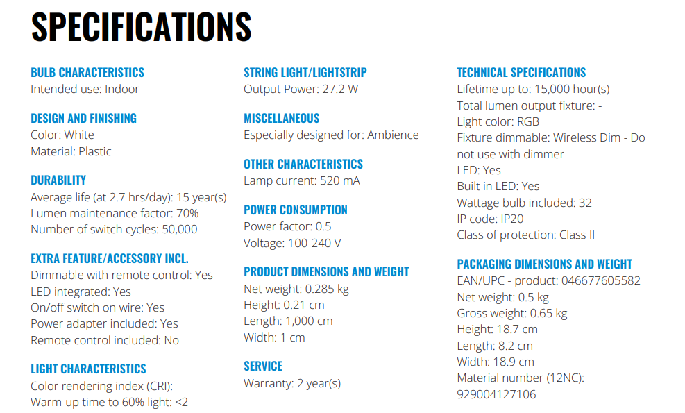 Product Name: WiZ 10METER 27.2W LED SMART RGBIC STRIPLIGHT TYPE-A