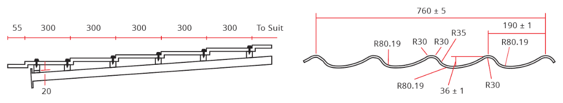 Ledex® Uro-Span Step Roofing mimics the look of Spanish clay tiles, providing an economical and attractive solution for commercial and residential canopy extensions. Customizable to any length, it is quick to install and made from high-quality Zinc-Aluminum coated steel for durability and corrosion resistance.