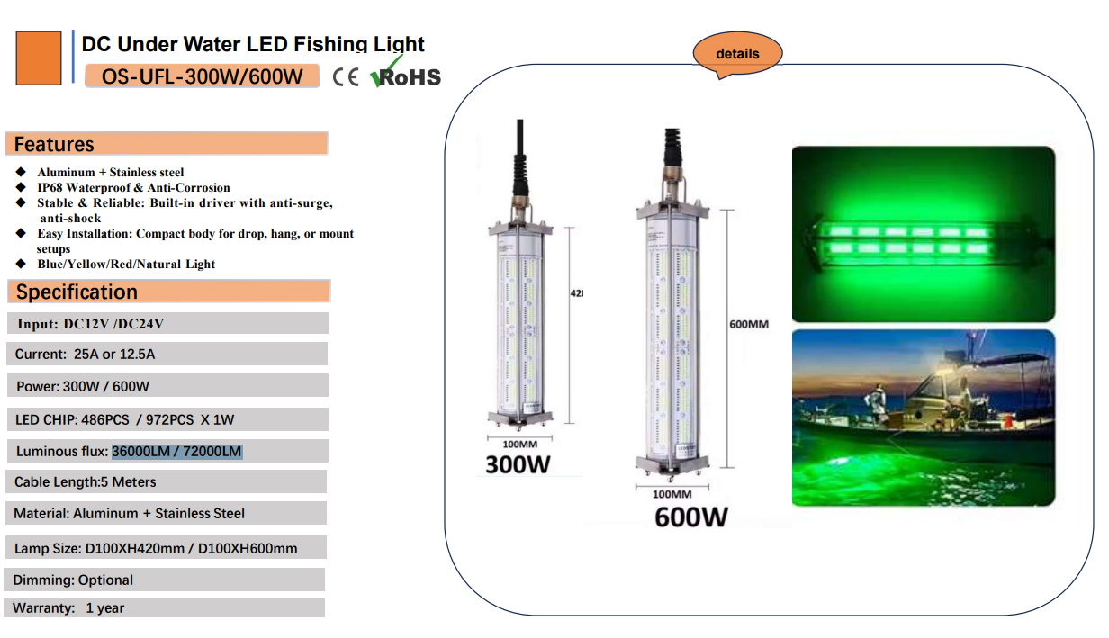 Built with a 5-meter durable cable and a fully waterproof IP68 rating, the OS-UFL underwater flood lamp is ideal for marine professionals, offshore workers, fishing boats, aquaculture facilities, and night-time fishing enthusiasts who require dependable underwater lighting solutions.